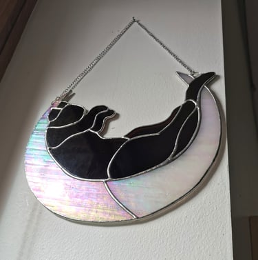 "Je recommande vivement le travail de Mylène. D’une idée abstraite, à la réalisation finale, le processus est fluide, Mylène nous accompagne en donnant vie au fur et à mesure à cette idée : en passant par des propositions de croquis, au choix des verres (couleurs, textures), la couleur de la soudure… Je suis ravie de mon vitrail, qui, je trouve, est fidèle à l’idée que je m’en faisait (et même plus joli ahah). Qui plus est, j’ai adoré la progression artistique du projet et voir ce vitrail prendre vie au fil de étapes. Enfin, la réalisation a été rapide et les échanges très fluides. Encore merci" - Lucie